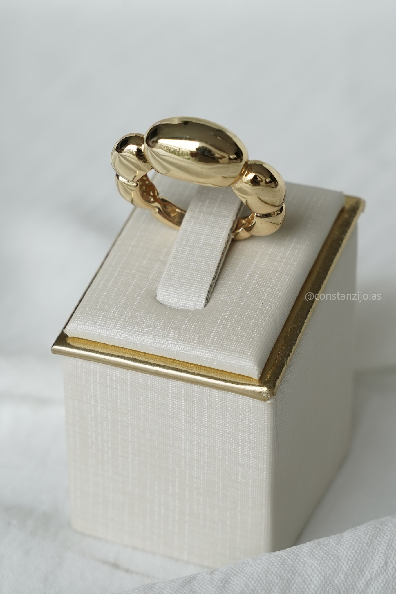 Produzido em metal com banho flash na cor dourada, o Anel Mikonos é uma bijuteria fina de alta qualidade. Seu acabamento polido confere um brilho suave e refinado, ideal para compor looks elegantes, desde produções minimalistas até combinações mais ousadas.