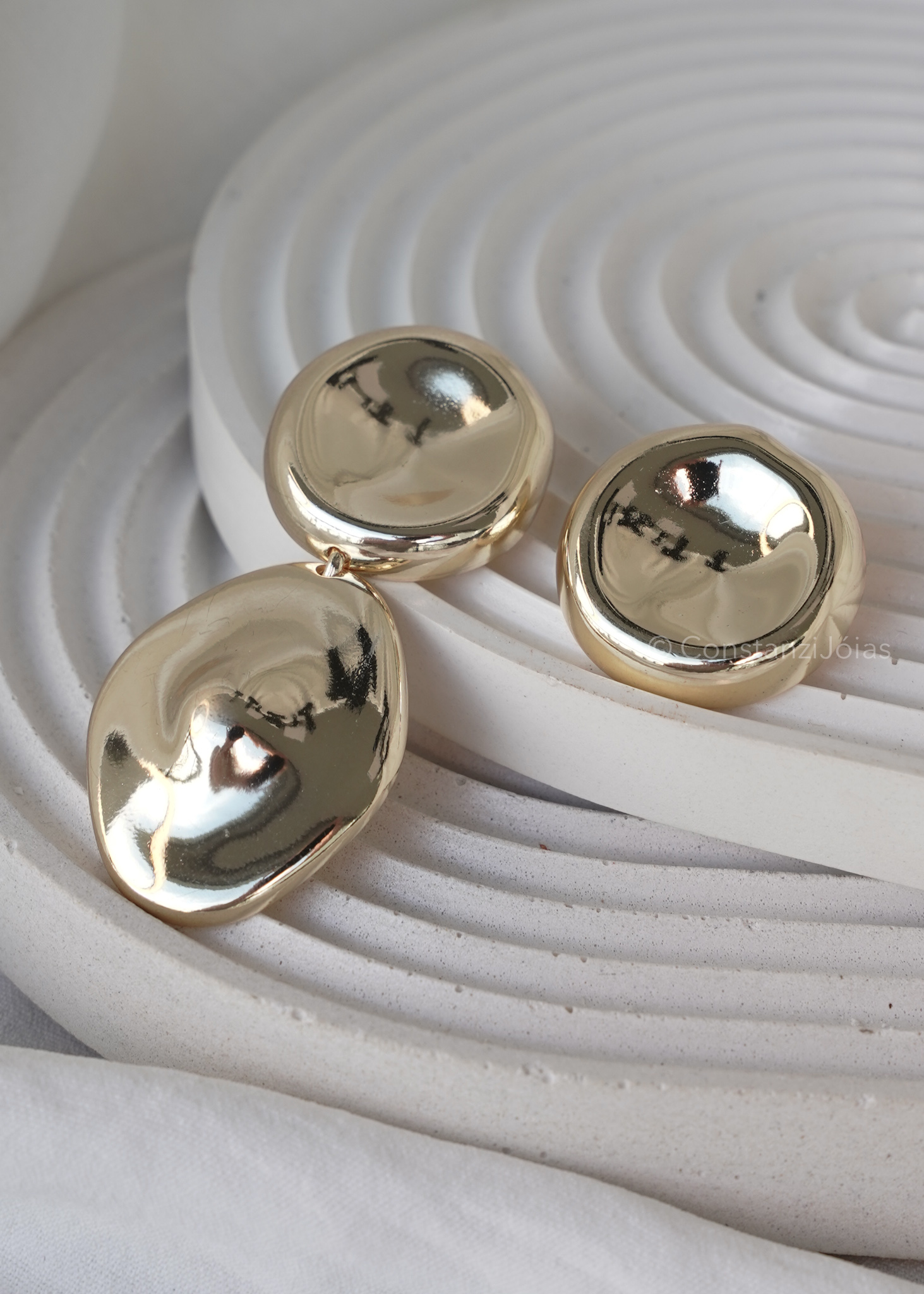 O Brinco Desigual apresenta um design elegante e moderno sendo cada lado com uma proposta visual única. Um Lado é diferente do outro, trazendo uma proposta super moderna e interessante. Produto em metal com Banho Flash Dourado / Bijouteria Fina. Pode ser combinado com outros colares e acessórios, formando um mix para valorizar sua produção.