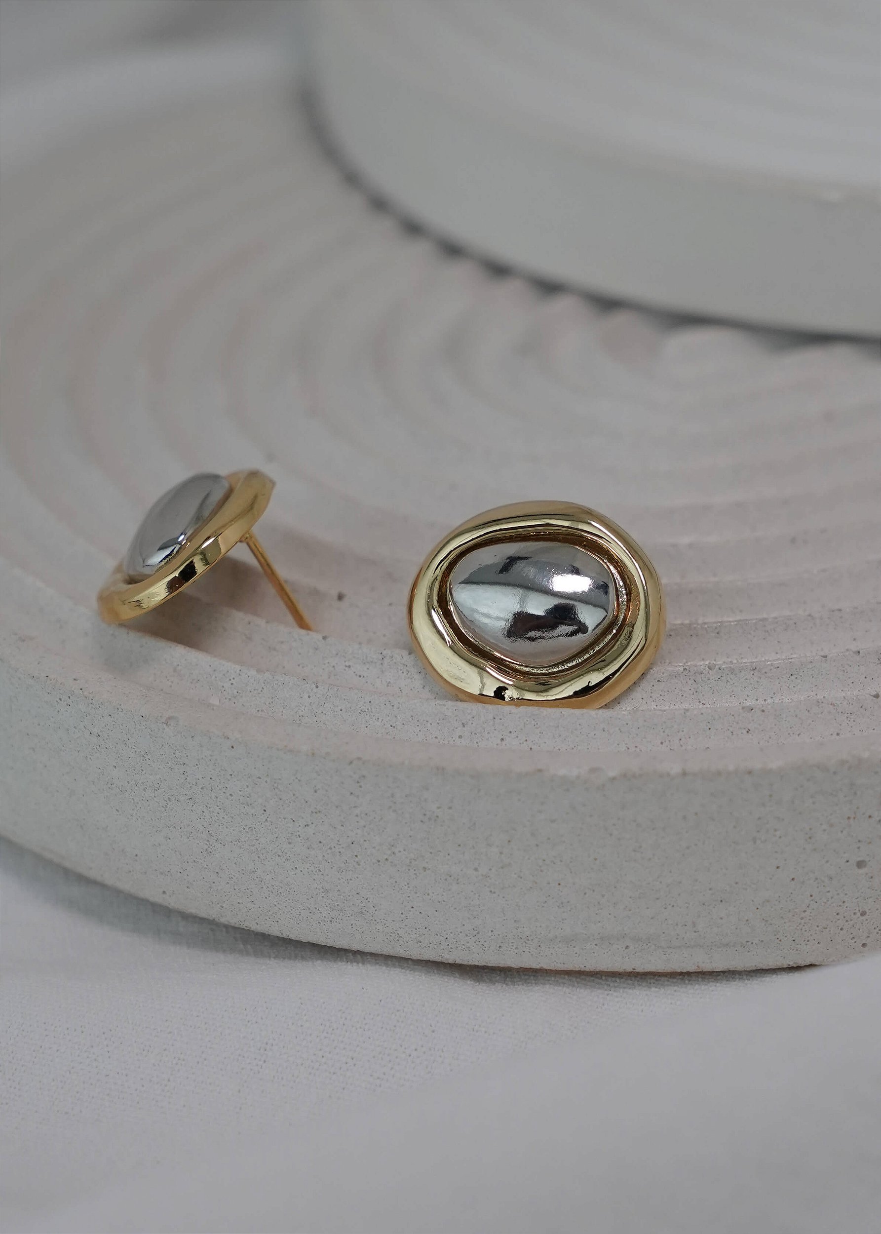 O Brinco Equilibrio apresenta um design elegante e orgânico. Produto em metal com Banho Flash com mix de banhos cor dourado e prata / Bijouteria Fina. Pode ser combinado com outros colares e acessórios, formando um mix para valorizar sua produção.