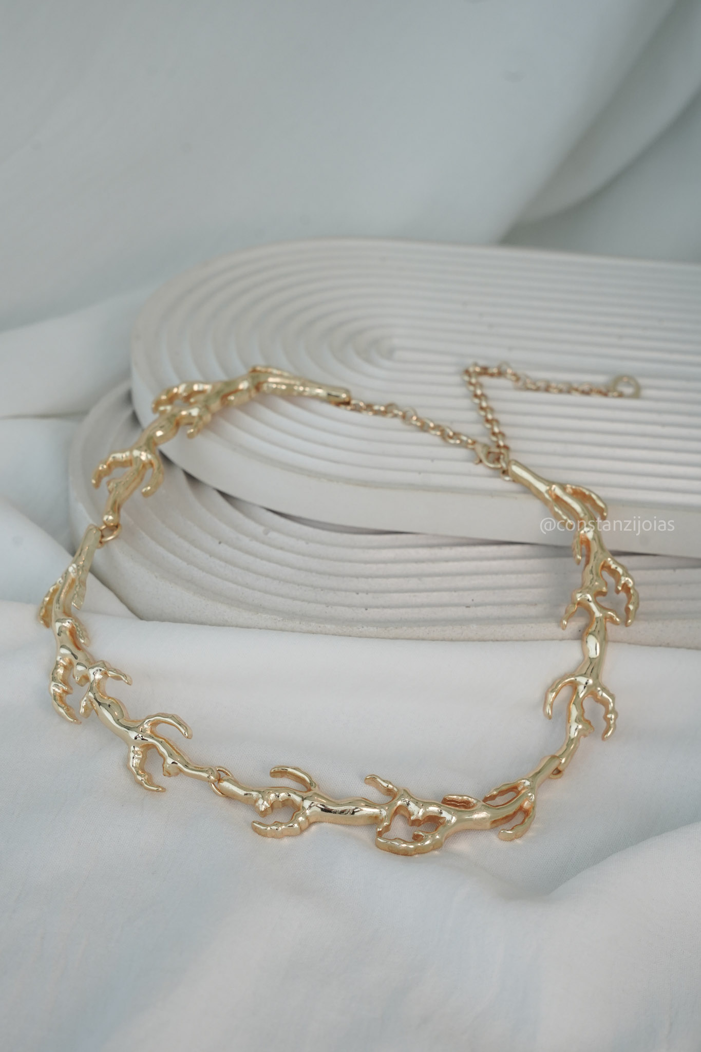 O Colar Alga traz um design marcante e contemporâneo, inspirado nas formas orgânicas das algas marinhas. Sua estrutura mais robusta e rígida confere presença e personalidade ao visual, tornando a peça um destaque elegante para quem busca acessórios com identidade e estilo.