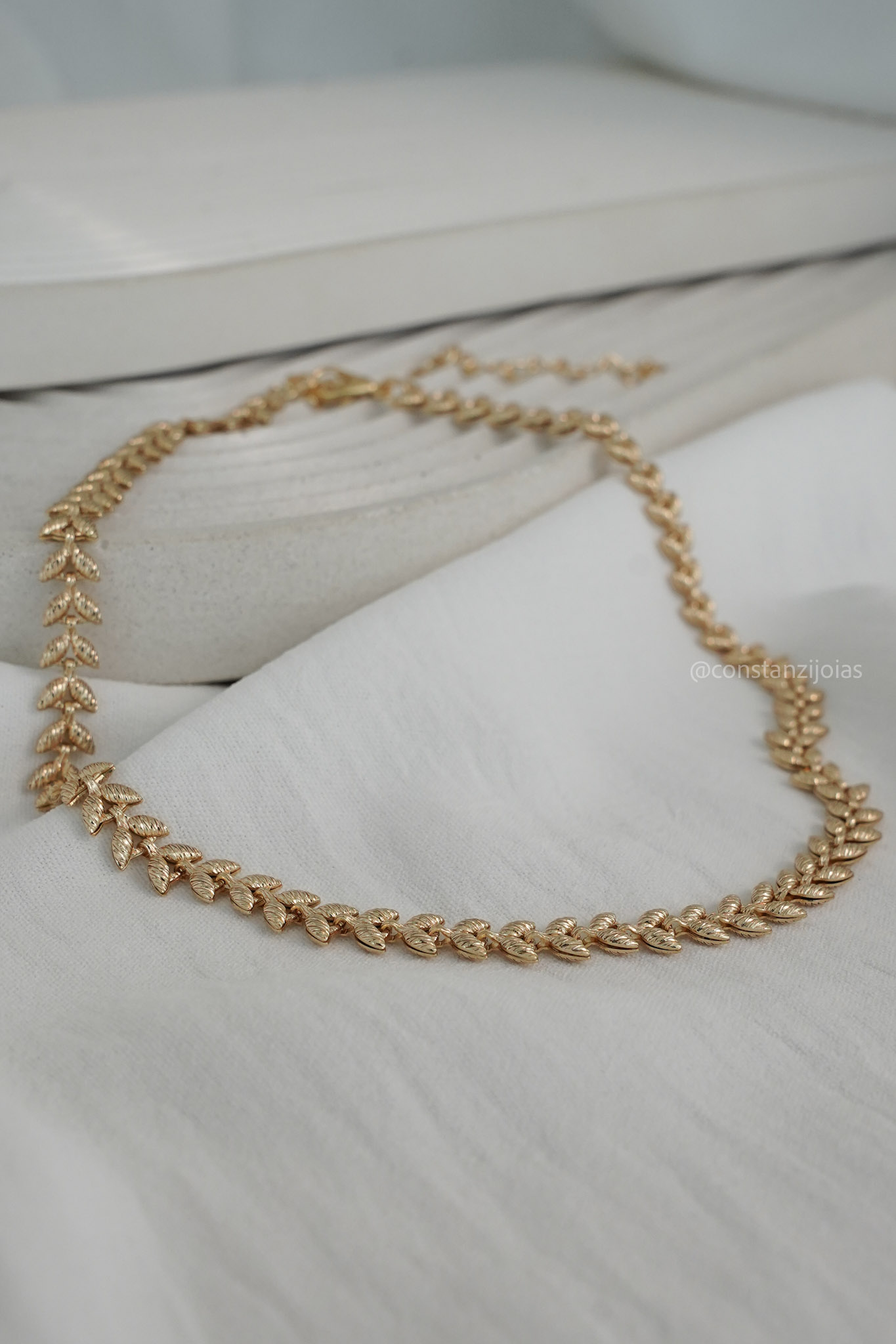 O Colar Choker Eden traz um design sofisticado inspirado na natureza, com uma corrente delicadamente trabalhada em formato de folhas. Sua estética elegante e atemporal valoriza o colo com presença e leveza, tornando a peça versátil para diferentes estilos e ocasiões.