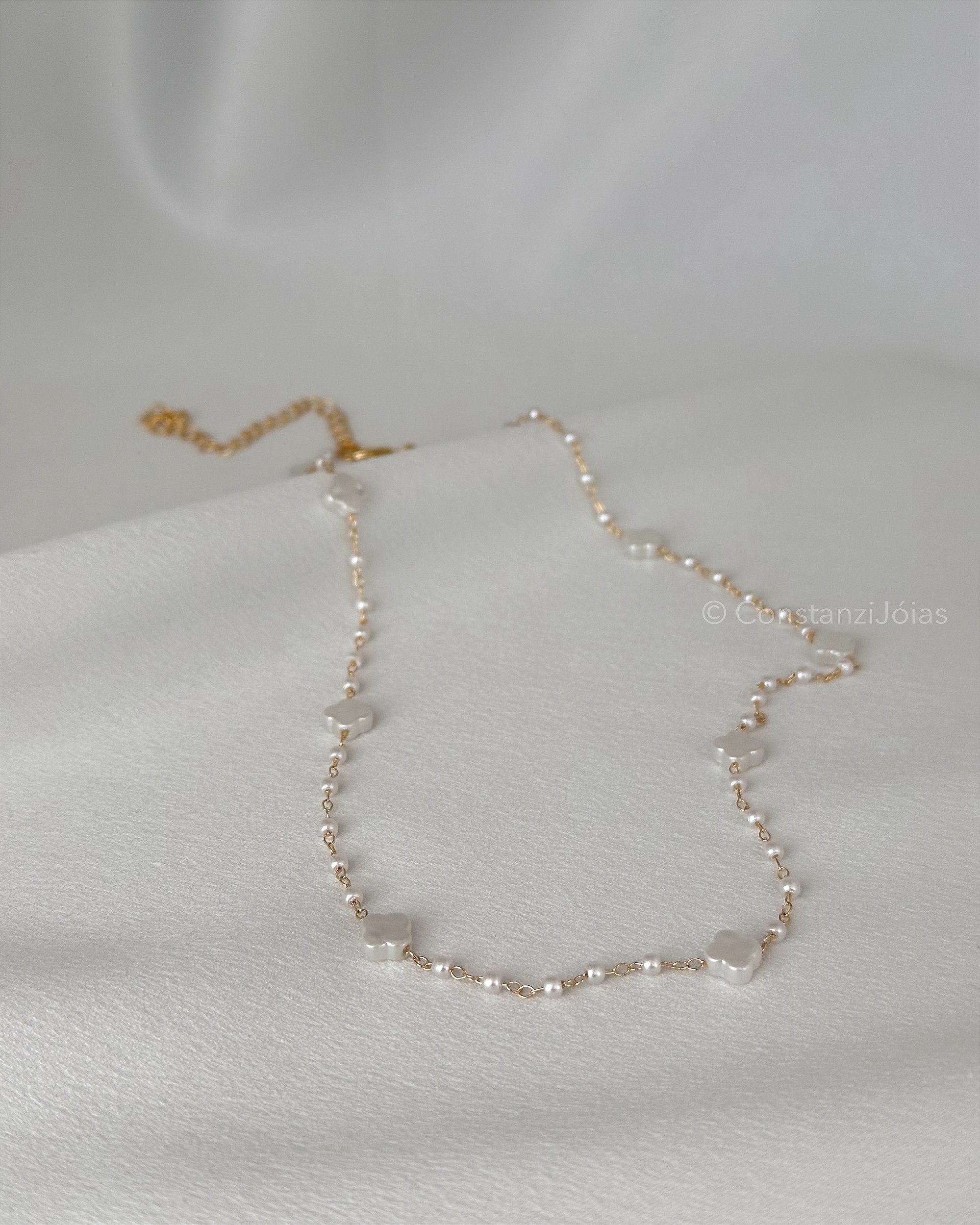 O Colar Van apresenta um design elegante e delicado, sendo repleto de pérolas sintéticas além de uma linda corrente dourada com Banho Flash (Bijouteria Fina). Pode ser combinado com outros colares e acessórios, formando um mix para valorizar sua produção.